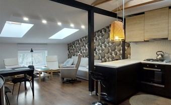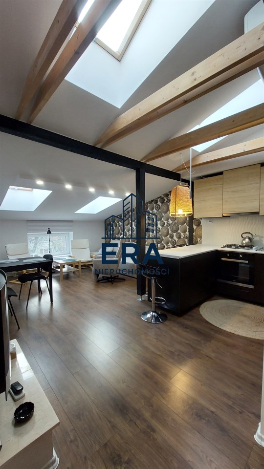 Całe mieszkanie jest fantastycznie doświetlone pięknymi oknami dachowymi.