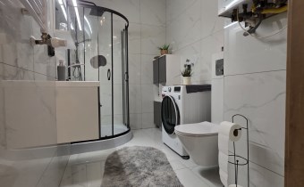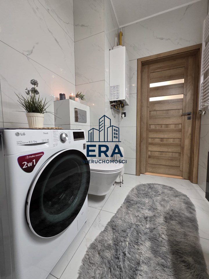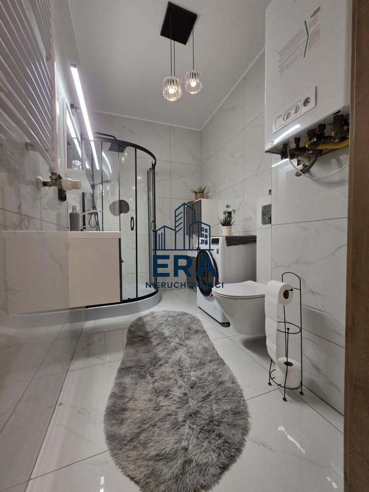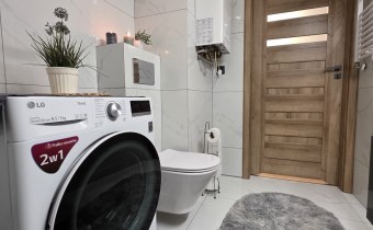Okna aluminiowe, rolety zewnętrzne oraz nowoczesne wykończenie zapewniają komfort i bezpieczeństwo. Ogrzewanie gazowe oraz ciepła woda z pieca gazowego gwarantują niskie koszty utrzymania.