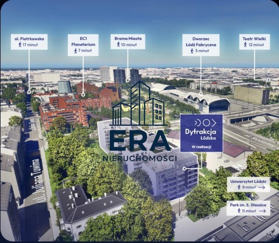 5 min do dworca PKP Łódź Fabryczna w przyszłości połączonego z ogólnopolską siecią CPK