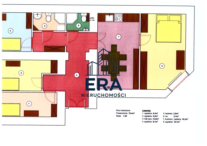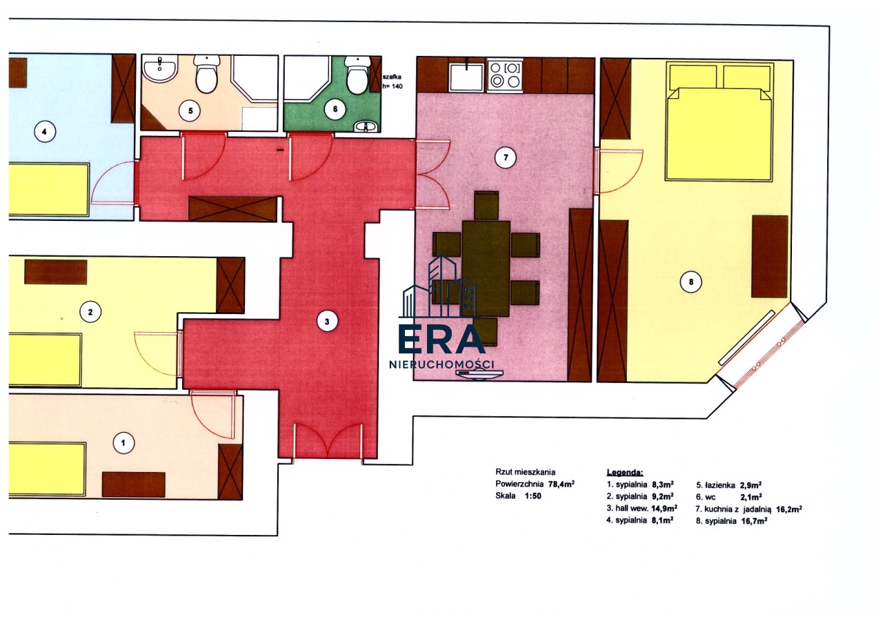 Istnieje możliwość przearanżowania przestrzeni mieszkalnej poprzez usunięcie niektórych ścianek działowych i tym samym powiększenie istniejących pokoi. Ze względu na swoją lokalizację mieszkanie doskonale sprawdzi się zarówno z przeznaczeniem pod inwestycję np. na najem pokoi, jak i na przestrzeń mieszkalną dla rodziny.