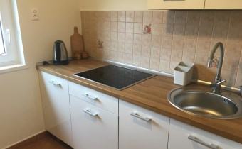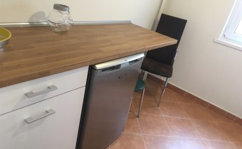 - kuchnia z oknem, umeblowana, płyta elektryczna, lodówka, czajnik,