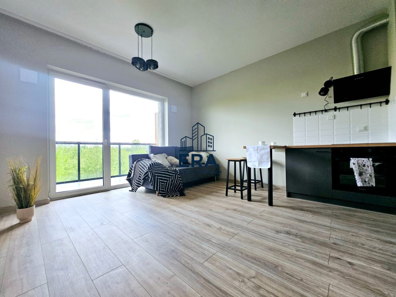 Mieszkanie składa się z salonu z aneksem kuchennym , łazienki i korytarza o łącznej powierzchni 28,17m2.