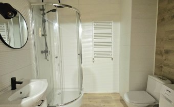 W łazience o powierzchni 4,31m2 znajduje się pralka, wc, kabina prysznicowa, umywalka na szafce a także lustro. W Przedpokoju znajduje się szafa, zaś w salonie komoda i łóżko.