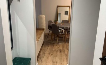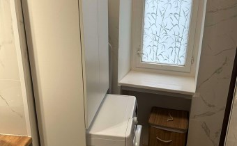 Z przedpokoju o pow 4m2 oddzielne wejścia do wc  o pow 1,2 ( glazura, terakota) oraz kuchni o pow 7,30 umeblowanej całkowicie ( zmywarka, lodówka, płyta oraz piekarnik)