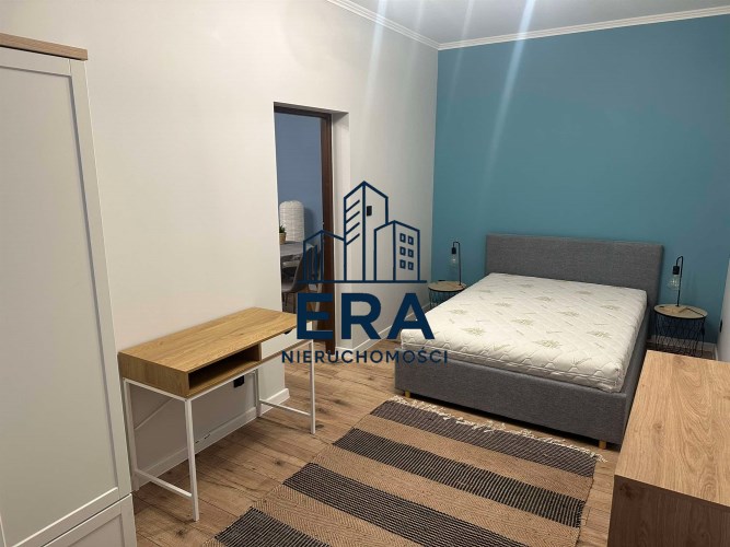 Mieszkanie jest  umeblowane - wyposażone , co ułatwi od razu zamieszkanie i składa się z salonu o pow 20m2( wyjście na balkon)w pokoju tym znajduj się kanapa narożna, stolik RTV , komoda , stół 4 krzesła, stolik kawowy, drugiego mniejszego pokoju tz. sypialnia o pow 14m2 na wyposażeniu łózko 2 osobowe , lampki nocne , biurko i komoda oraz dywan z tego pokoju jest wejście do łazienki  o pow 4m 2 ( natrysk, pralka , umywalka z lustrem).