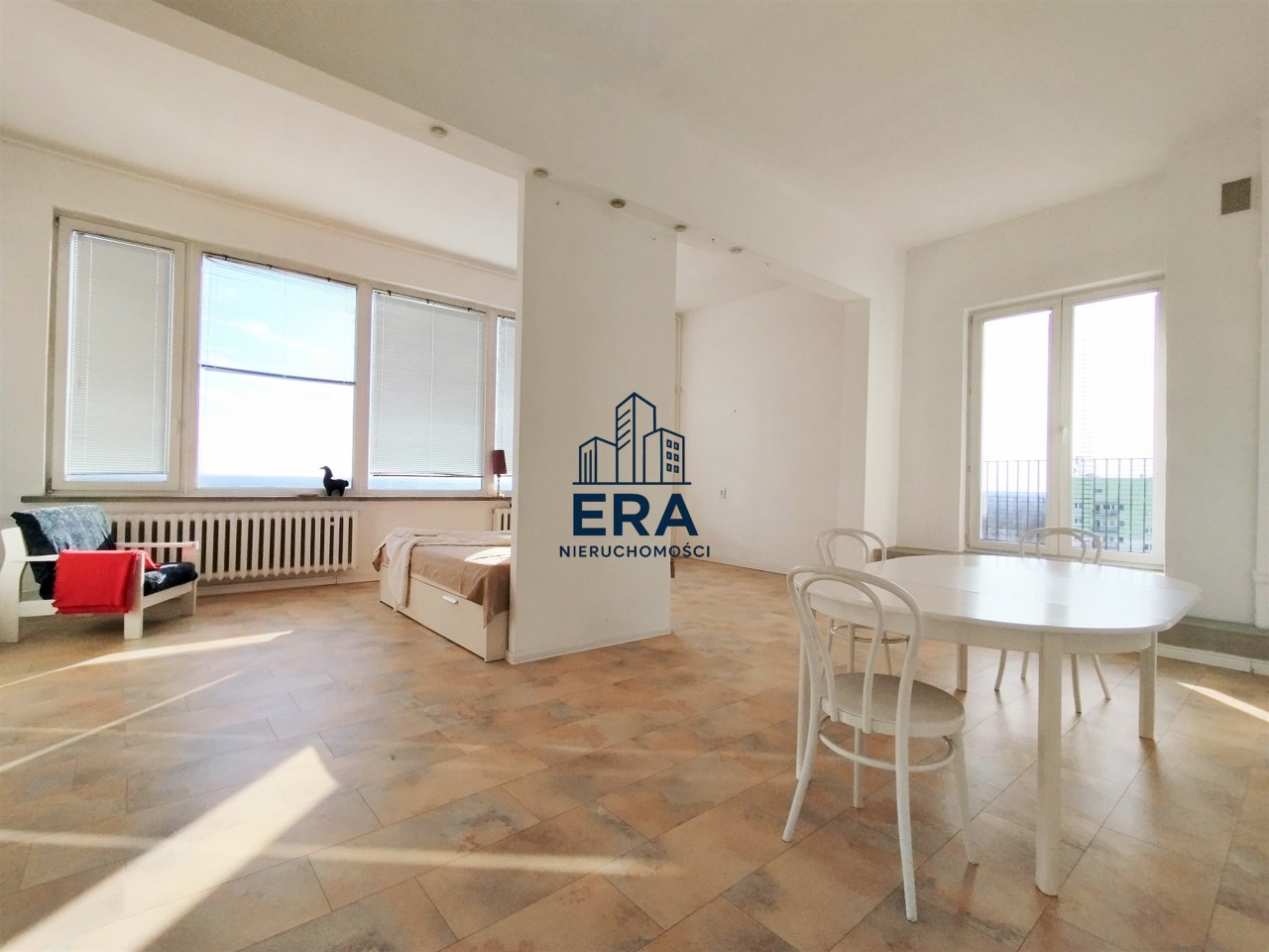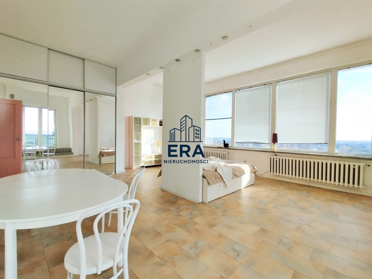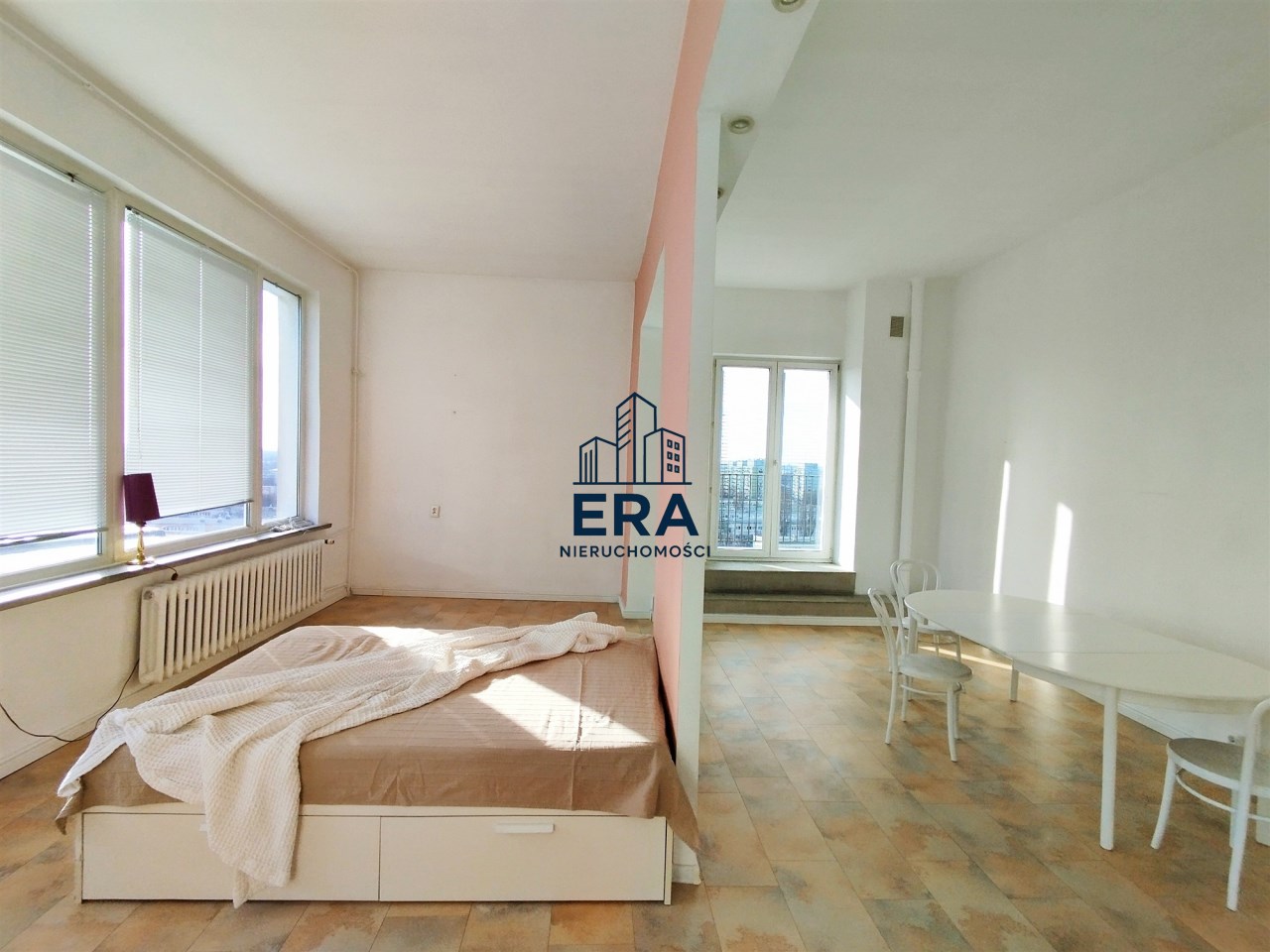 Przestronne mieszkanie o powierzchni ok. 62 mkw, o nietypowym rozkładzie położone na 11 piętrze w wieżowcu z windą nowego typu. Mieszkanie składa się z dużego pokoju (ponad 40mkw), kuchni, łazienki z wc i przedpokoju, z którego jest wejście schodami na niewielką antresolę. Mieszkanie posiada duży balkon z ciekawym widokiem. Wystawa okien - południe, wschód, zachód.