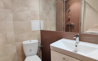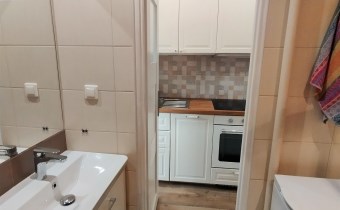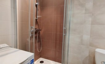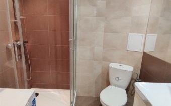 Wykończenie i umeblowanie mieszkania: Pokoje - podłogi panele, ściany malowane. Kuchnia - podłoga panele, na ścianach glazura. Szafki kuchenne, lodówka, płyta elektryczna, piekarnik, zmywarka Łazienka z wc - płytki na ścianie i podłodze. Kabina prysznicowa, umywalka z szafką, wc
