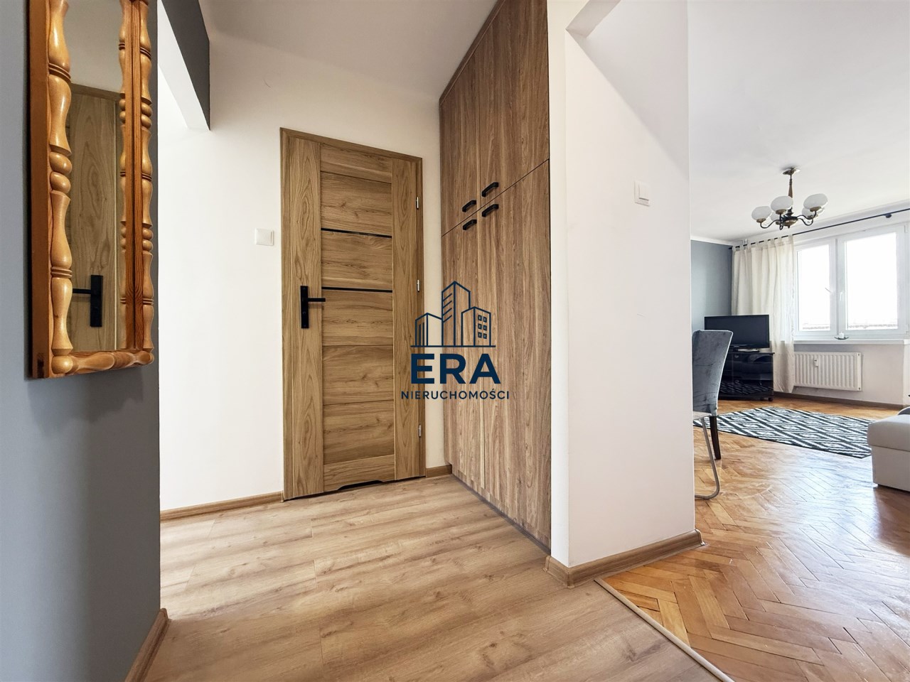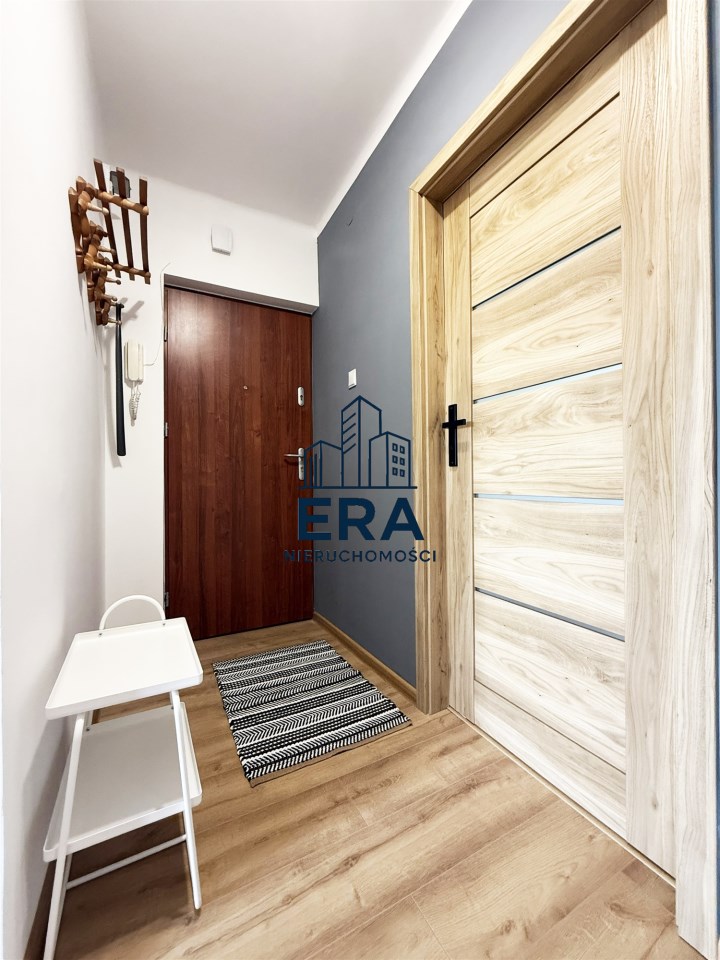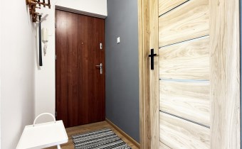 W przedpokoju pojemna szafa, lustro oraz wieszaki na odzież wierzchnią.