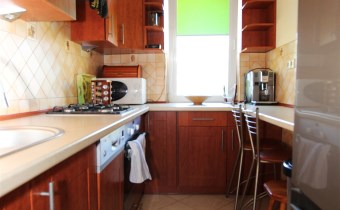 Kuchnia oraz łazienka wyposażona we wszystkie niezbędne urządzenia AGD (pralka, zmywarka, płyta gazowa, piekarnik).