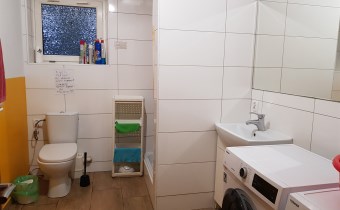 pomieszczenie z oknem, na wyposażeniu: WANNA, UMYWALKA, TOALETA, BIDET