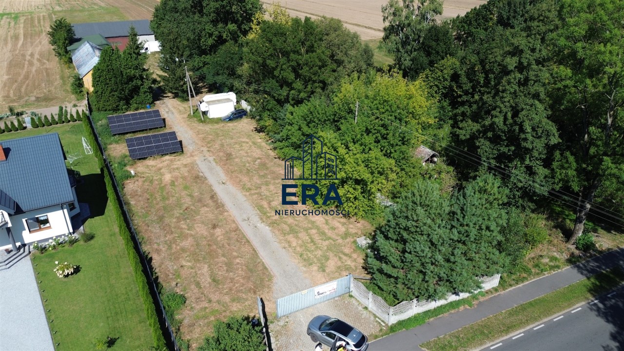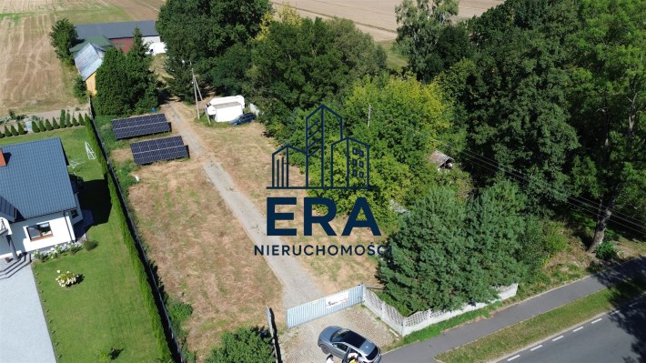 Duża działka 4979m2 z bezpośrednim dostępem do drogi publicznej. Działka ogrodzona, z duża bramą i utwardzonym podjazdem do budynków.