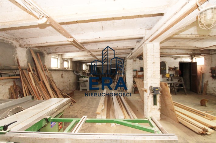 Budynek o powierzchni 180 m2 składający się ze stolarni o powierzchni 160 m2 z dwoma niezależnymi wejściami, suszarni z wsadem 15- 17 m3 oraz mieszkania o powierzchni około 20 m2 które składa się z pokoju, kuchni i łazienki.